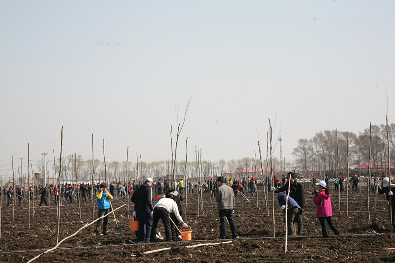 4月19日,黑龙江省委组织部、宣传部、林业厅等40家省直党政机关单位,1000多位公务员,在平房区哈五路与第九大道交叉口开展义务植树活动。